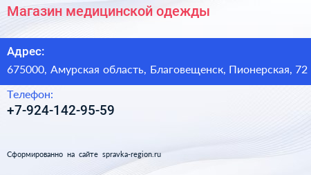 Магазин медицинской одежды по адресу 675000, Амурская область, Благовещенск, Пионерская, 72 в дальнейшем Организация, размещена в следующих категориях:
