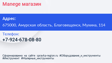 Manege, магазин по адресу 675000, Амурская область, Благовещенск, Мухина, 114 в дальнейшем Организация, размещена в следующих категориях: