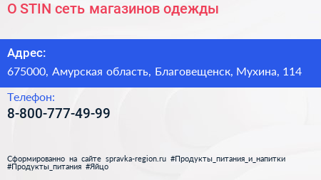 O`STIN, сеть магазинов одежды по адресу 675000, Амурская область, Благовещенск, Мухина, 114 в дальнейшем Организация, размещена в следующих категориях: