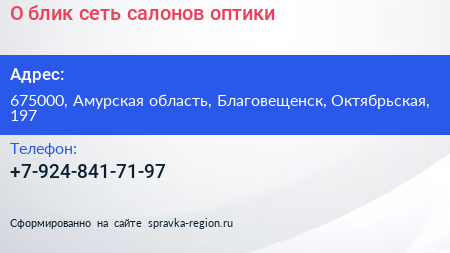 О`блик, сеть салонов оптики по адресу 675000, Амурская область, Благовещенск, Октябрьская, 197 в дальнейшем Организация, размещена в следующих категориях: