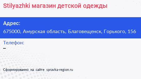 Stilyazhki, магазин детской одежды по адресу 675000, Амурская область, Благовещенск, Горького, 156 в дальнейшем Организация, размещена в следующих категориях: