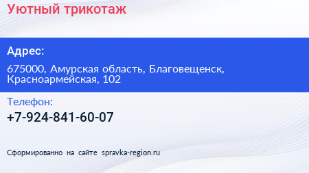 Уютный трикотаж по адресу 675000, Амурская область, Благовещенск, Красноармейская, 102 в дальнейшем Организация, размещена в следующих категориях: