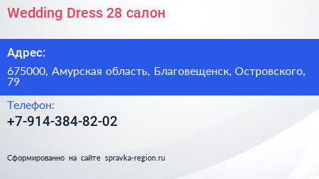 Wedding Dress 28, салон по адресу 675000, Амурская область, Благовещенск, Островского, 79 в дальнейшем Организация, размещена в следующих категориях: