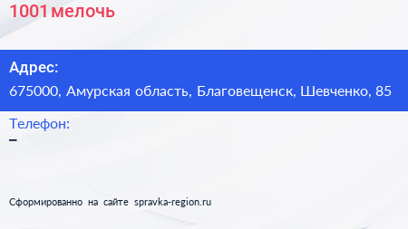 1001 мелочь по адресу 675000, Амурская область, Благовещенск, Шевченко, 85 в дальнейшем Организация, размещена в следующих категориях: