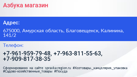 Азбука, магазин по адресу 675000, Амурская область, Благовещенск, Калинина, 141/2 в дальнейшем Организация, размещена в следующих категориях: