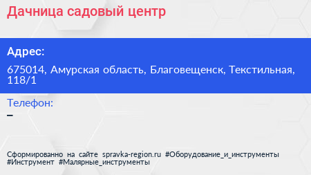 Дачница, садовый центр по адресу 675014, Амурская область, Благовещенск, Текстильная, 118/1 в дальнейшем Организация, размещена в следующих категориях:
