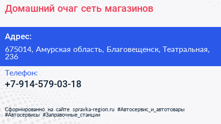 Домашний очаг, сеть магазинов по адресу 675014, Амурская область, Благовещенск, Театральная, 236 в дальнейшем Организация, размещена в следующих категориях: