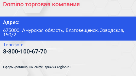 Domino, торговая компания по адресу 675000, Амурская область, Благовещенск, Заводская, 150/2 в дальнейшем Организация, размещена в следующих категориях: