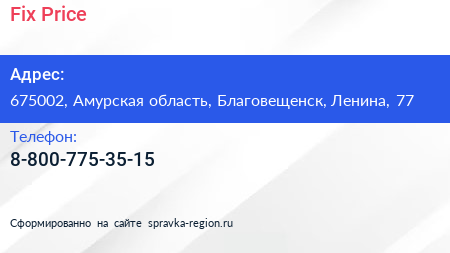 Fix Price по адресу 675002, Амурская область, Благовещенск, Ленина, 77 в дальнейшем Организация, размещена в следующих категориях: