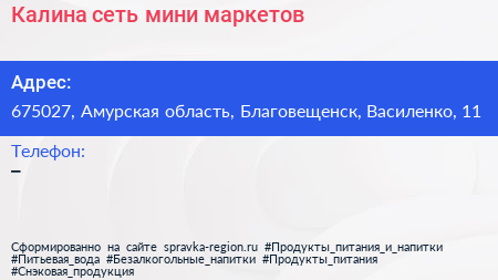 Калина, сеть мини-маркетов по адресу 675027, Амурская область, Благовещенск, Василенко, 11 в дальнейшем Организация, размещена в следующих категориях: