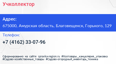 Учколлектор по адресу 675000, Амурская область, Благовещенск, Горького, 129 в дальнейшем Организация, размещена в следующих категориях: