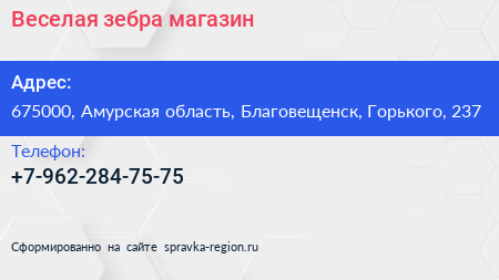 Веселая зебра, магазин по адресу 675000, Амурская область, Благовещенск, Горького, 237 в дальнейшем Организация, размещена в следующих категориях: