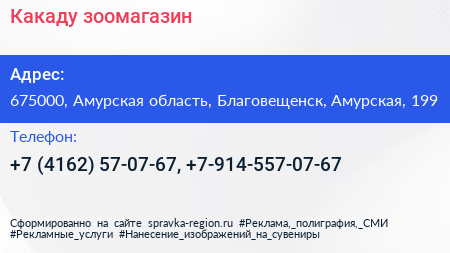 Какаду, зоомагазин по адресу 675000, Амурская область, Благовещенск, Амурская, 199 в дальнейшем Организация, размещена в следующих категориях:
