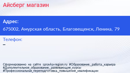 Айсберг, магазин по адресу 675002, Амурская область, Благовещенск, Ленина, 79 в дальнейшем Организация, размещена в следующих категориях: