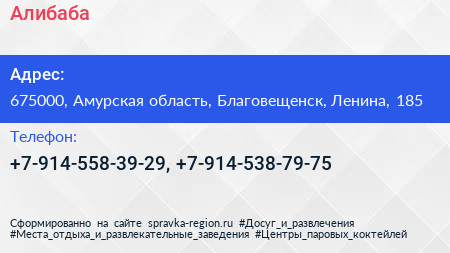 Алибаба по адресу 675000, Амурская область, Благовещенск, Ленина, 185 в дальнейшем Организация, размещена в следующих категориях: