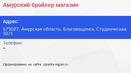 Амурский бройлер, магазин по адресу 675027, Амурская область, Благовещенск, Студенческая, 32/1 в дальнейшем Организация, размещена в следующих категориях: