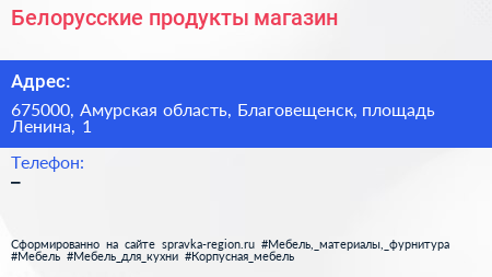 Белорусские продукты, магазин по адресу 675000, Амурская область, Благовещенск, площадь Ленина, 1 в дальнейшем Организация, размещена в следующих категориях: