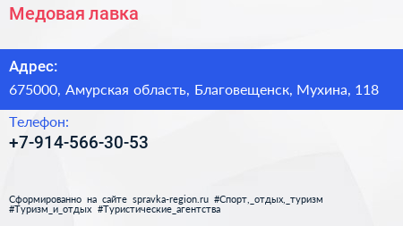 Медовая лавка по адресу 675000, Амурская область, Благовещенск, Мухина, 118 в дальнейшем Организация, размещена в следующих категориях: