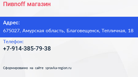 Пивnoff, магазин по адресу 675027, Амурская область, Благовещенск, Тепличная, 18 в дальнейшем Организация, размещена в следующих категориях: