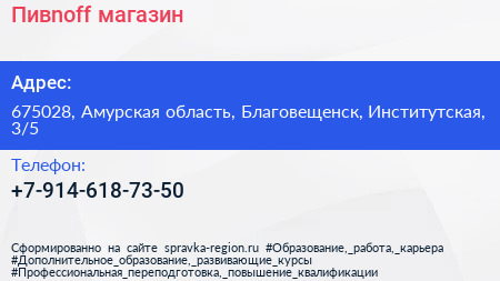 Пивnoff, магазин по адресу 675028, Амурская область, Благовещенск, Институтская, 3/5 в дальнейшем Организация, размещена в следующих категориях: