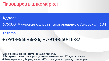 Пивоваровъ, алкомаркет по адресу 675000, Амурская область, Благовещенск, Амурская, 104 в дальнейшем Организация, размещена в следующих категориях: