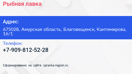 Рыбная лавка по адресу 675028, Амурская область, Благовещенск, Кантемирова, 16/1 в дальнейшем Организация, размещена в следующих категориях:
