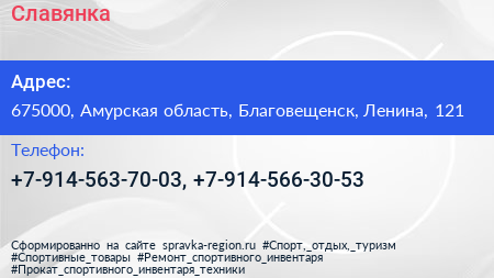 Славянка по адресу 675000, Амурская область, Благовещенск, Ленина, 121 в дальнейшем Организация, размещена в следующих категориях: