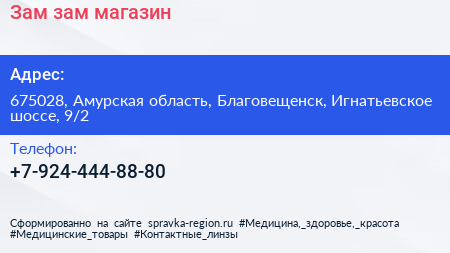 Зам-зам, магазин по адресу 675028, Амурская область, Благовещенск, Игнатьевское шоссе, 9/2 в дальнейшем Организация, размещена в следующих категориях: