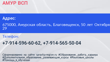 АМУР ВСП по адресу 675000, Амурская область, Благовещенск, 50 лет Октября, 29 в дальнейшем Организация, размещена в следующих категориях: