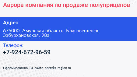 Аврора, компания по продаже полуприцепов по адресу 675000, Амурская область, Благовещенск, Забурхановская, 98а в дальнейшем Организация, размещена в следующих категориях: