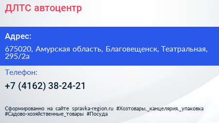 ДЛТС, автоцентр по адресу 675020, Амурская область, Благовещенск, Театральная, 295/2а в дальнейшем Организация, размещена в следующих категориях: