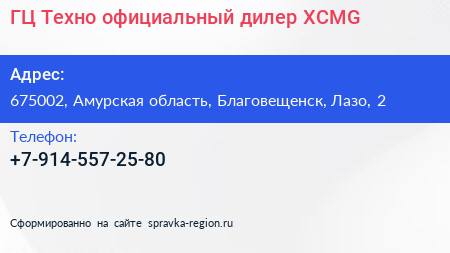 ГЦ Техно, официальный дилер XCMG по адресу 675002, Амурская область, Благовещенск, Лазо, 2 в дальнейшем Организация, размещена в следующих категориях: