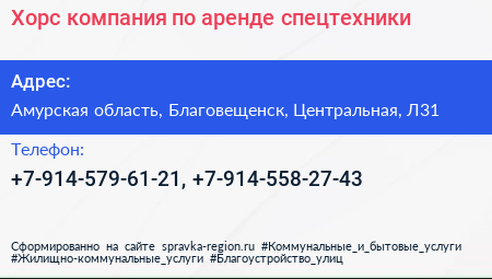 Хорс, компания по аренде спецтехники по адресу Амурская область, Благовещенск, Центральная, Л31 в дальнейшем Организация, размещена в следующих категориях: