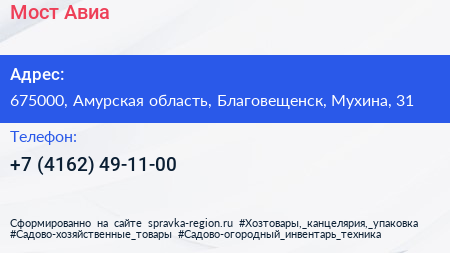 Мост Авиа по адресу 675000, Амурская область, Благовещенск, Мухина, 31 в дальнейшем Организация, размещена в следующих категориях: