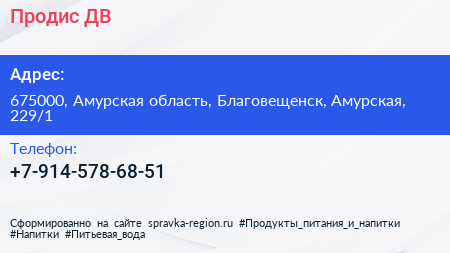 Продис-ДВ по адресу 675000, Амурская область, Благовещенск, Амурская, 229/1 в дальнейшем Организация, размещена в следующих категориях: