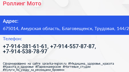 Роллинг Мото по адресу 675014, Амурская область, Благовещенск, Трудовая, 144/2 в дальнейшем Организация, размещена в следующих категориях:
