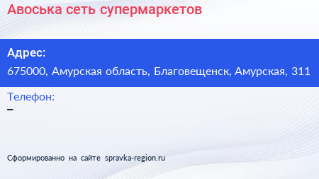Авоська, сеть супермаркетов по адресу 675000, Амурская область, Благовещенск, Амурская, 311 в дальнейшем Организация, размещена в следующих категориях:
