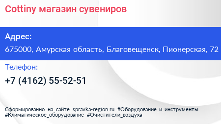 Cottiny, магазин сувениров по адресу 675000, Амурская область, Благовещенск, Пионерская, 72 в дальнейшем Организация, размещена в следующих категориях: