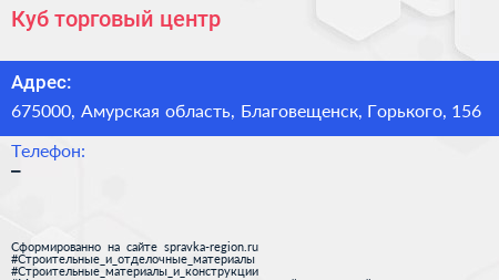 Куб, торговый центр по адресу 675000, Амурская область, Благовещенск, Горького, 156 в дальнейшем Организация, размещена в следующих категориях:
