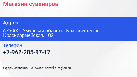 Магазин сувениров по адресу 675000, Амурская область, Благовещенск, Красноармейская, 102 в дальнейшем Организация, размещена в следующих категориях: