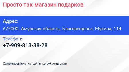 Просто так, магазин подарков по адресу 675000, Амурская область, Благовещенск, Мухина, 114 в дальнейшем Организация, размещена в следующих категориях: