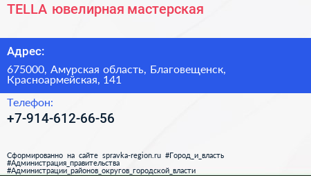 €$TELLA, ювелирная мастерская по адресу 675000, Амурская область, Благовещенск, Красноармейская, 141 в дальнейшем Организация, размещена в следующих категориях: