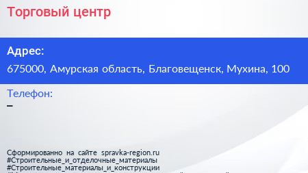 Торговый центр по адресу 675000, Амурская область, Благовещенск, Мухина, 100 в дальнейшем Организация, размещена в следующих категориях: