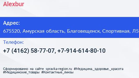 Alexbur по адресу 675520, Амурская область, Благовещенск, Спортивная, Л5 в дальнейшем Организация, размещена в следующих категориях: