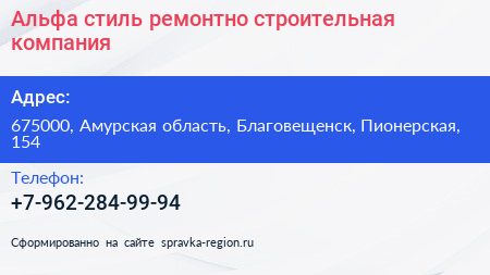 Альфа-стиль, ремонтно-строительная компания по адресу 675000, Амурская область, Благовещенск, Пионерская, 154 в дальнейшем Организация, размещена в следующих категориях: