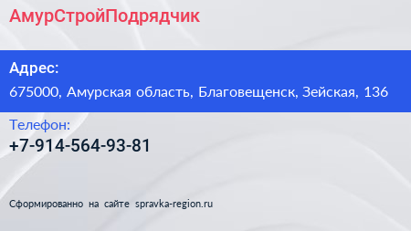 АмурСтройПодрядчик по адресу 675000, Амурская область, Благовещенск, Зейская, 136 в дальнейшем Организация, размещена в следующих категориях: