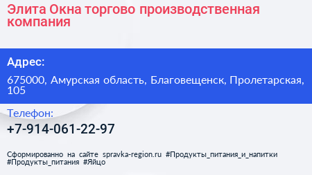 Элита Окна, торгово-производственная компания по адресу 675000, Амурская область, Благовещенск, Пролетарская, 105 в дальнейшем Организация, размещена в следующих категориях: