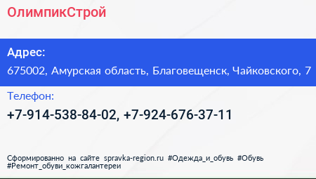 ОлимпикСтрой по адресу 675002, Амурская область, Благовещенск, Чайковского, 7 в дальнейшем Организация, размещена в следующих категориях: