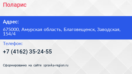 Поларис по адресу 675000, Амурская область, Благовещенск, Заводская, 154/4 в дальнейшем Организация, размещена в следующих категориях: