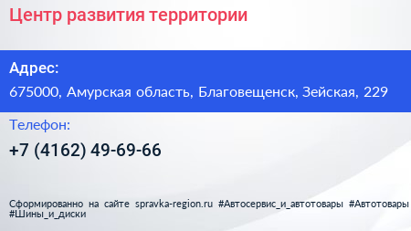 Центр развития территорий по адресу 675000, Амурская область, Благовещенск, Зейская, 229 в дальнейшем Организация, размещена в следующих категориях: